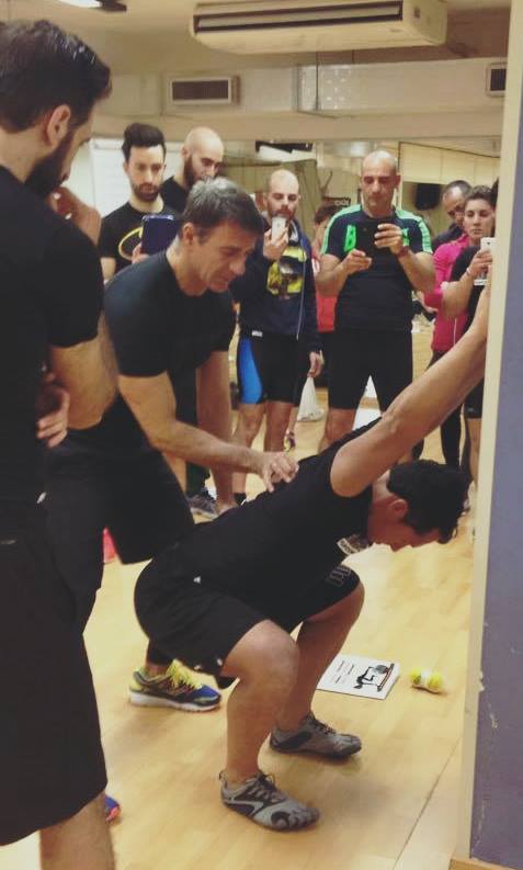 – allenamento in palestra: teaching sui basics (squat-front squat-overhead squat- stacco da terra- lunge-push press-one leg deadlift-push up-pull up o lat machine-renegade)
